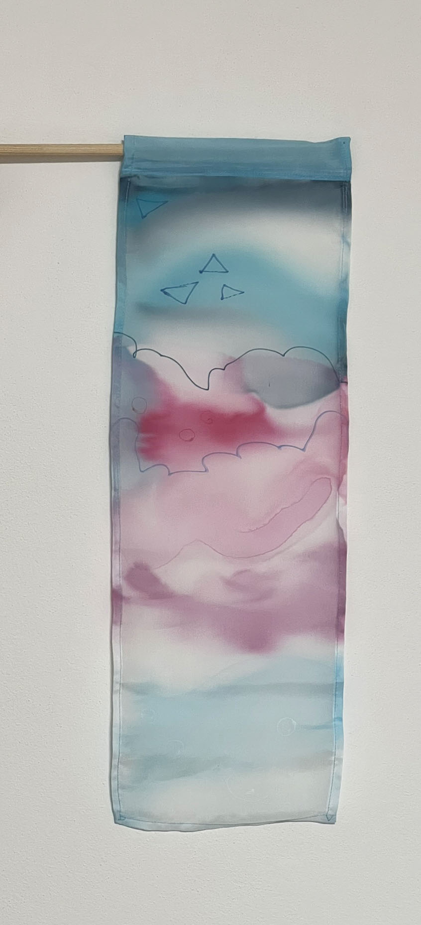 Dvojice praporků ze 100% přírodního hedvábí s autorskou malbou. Popisují krásu Božího stvoření a radost ze života.