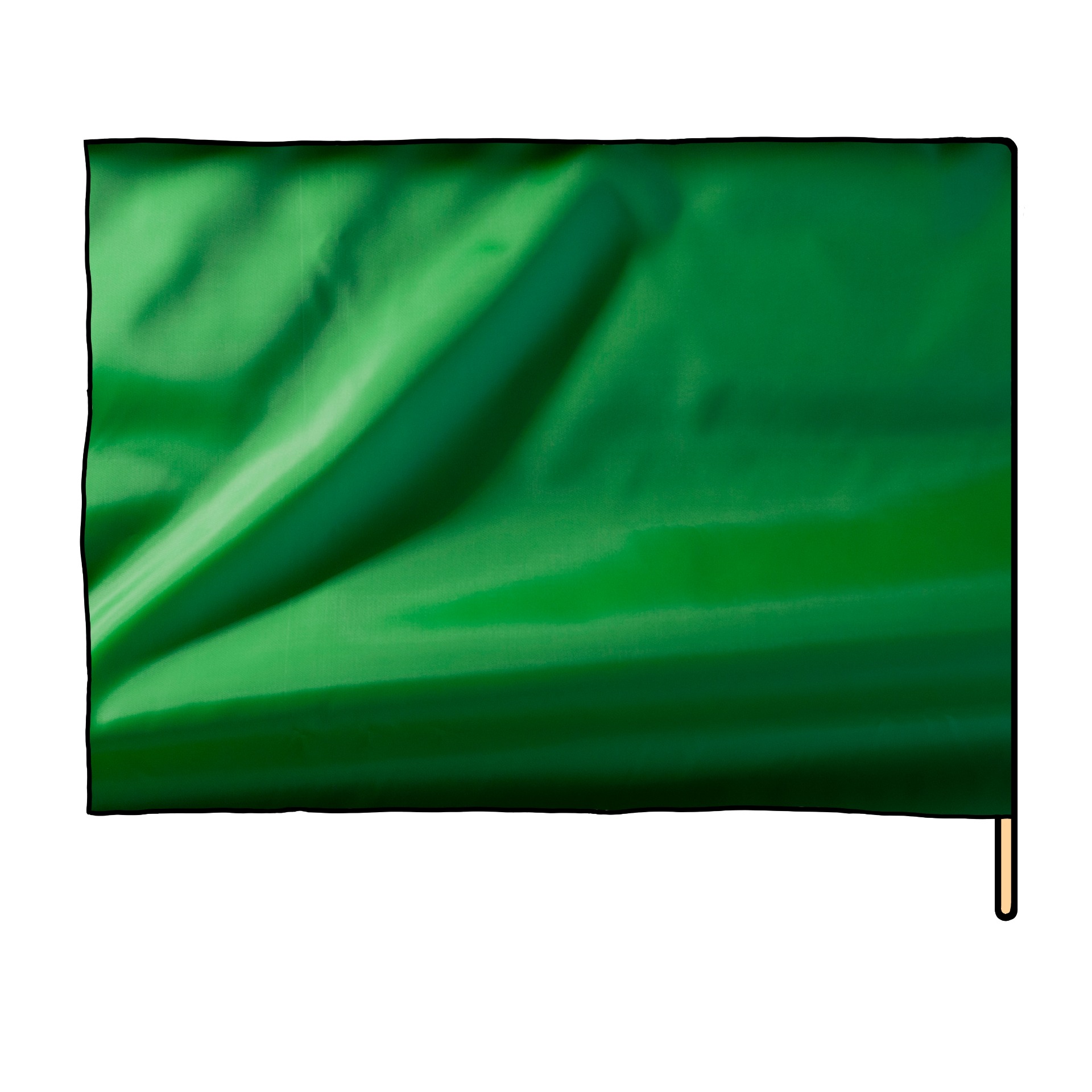 Tmavě zelený prapor z jemné látky, rozměr 95x120 cm.